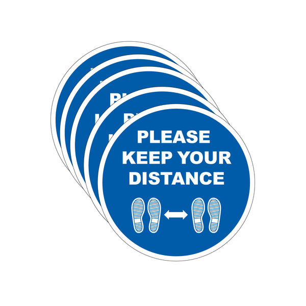 Please Keep Your Distance Floor Stickers (Blue)